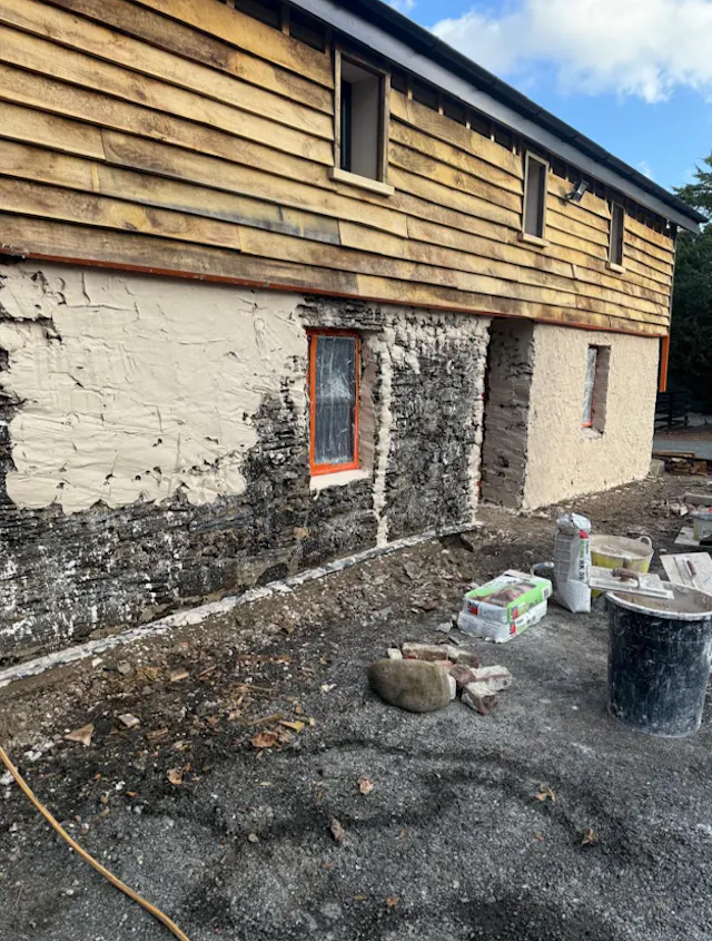 So, as it was stone, we used a lime render (RK39) and kept the shapes & curves. This was done over 3 coats.